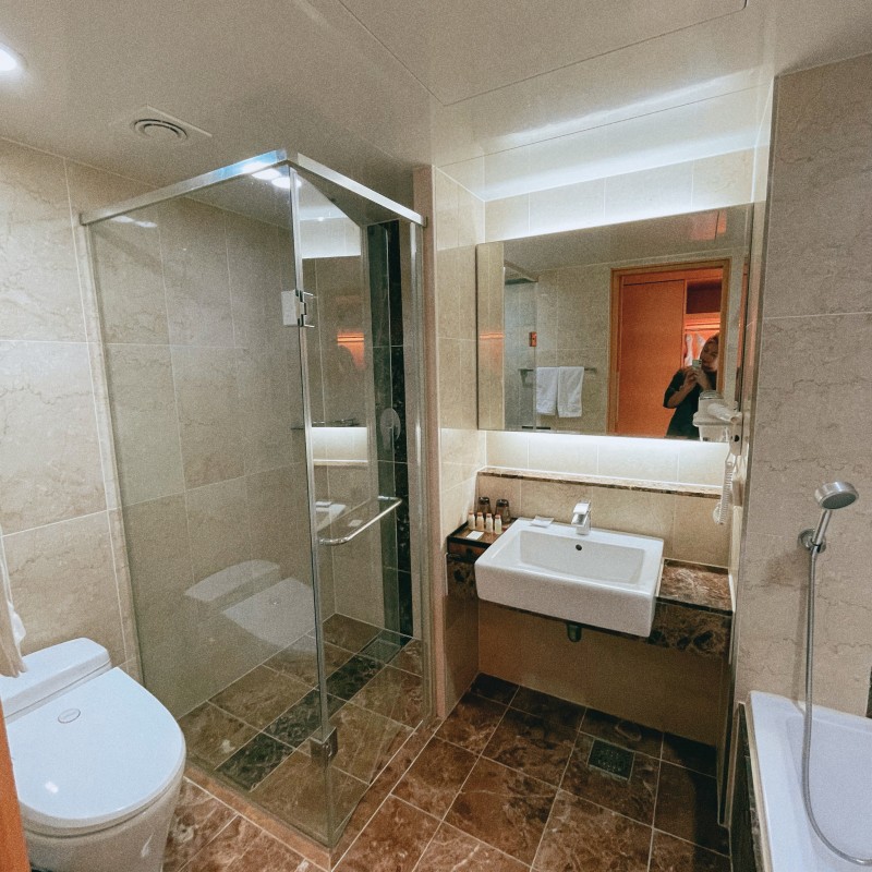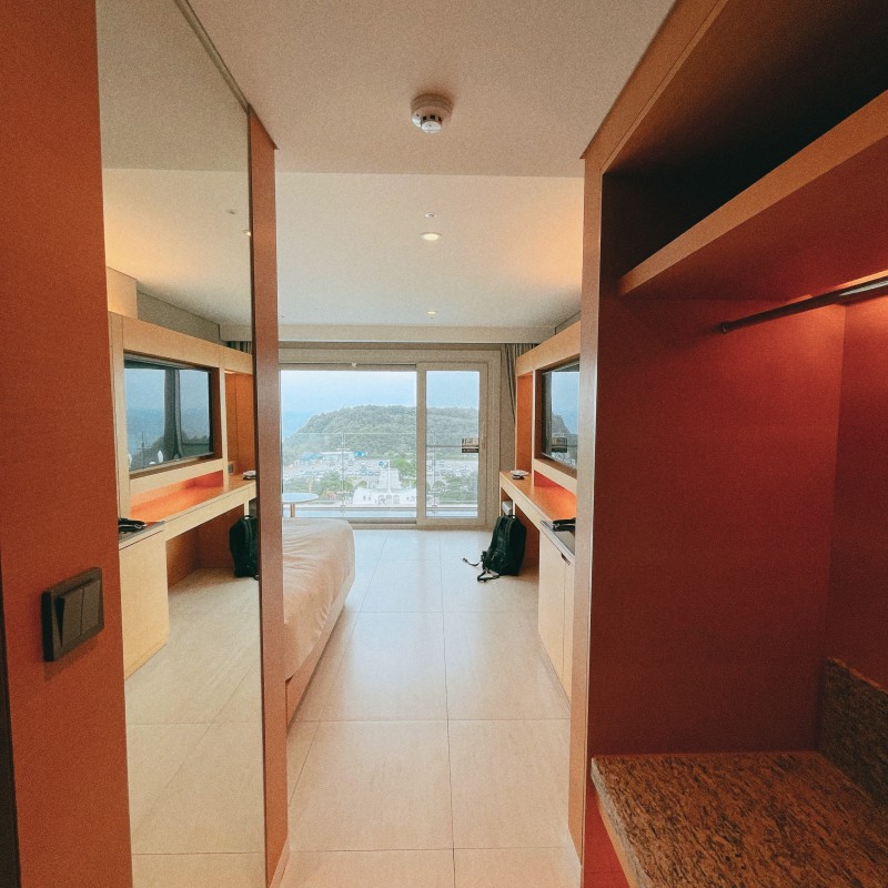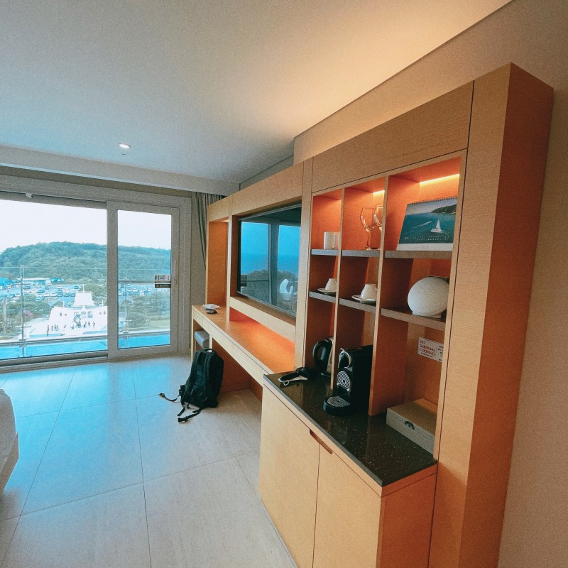 우리의 객실 드디어 공개해본다. 딱 들어서는 순간 깔. 끔. 하. 다.라는 생각이 들었다. 화장실도 크고 깨끗해서 너무 좋았고, 작은 소파에 침대 티비 까지 뭐 하나 빠짐없이 깔끔하게 정리되어 있어서 너무 좋았던 정동진 썬크루즈 호텔. 그리고 무엇보다 객실 안에 발코니가 있는 게 너무 좋았다. 아퉈는 아무래도 프랑스 사람이다 보니 발코니에 꽤 집착하는 편인데 다행히(?) 정동진 썬크루즈호텔 객실 안에는 발코니가 있었다. 발코니로 나가서 보는 뷰또한 너무 예뻤다. 한쪽에는 바다가 다른 한쪽으로는 산들이 보여 이것이 진정 힐링여행이라고 말할 수 있을 만큼 너무 좋았던 정동진 썬크루즈호텔!